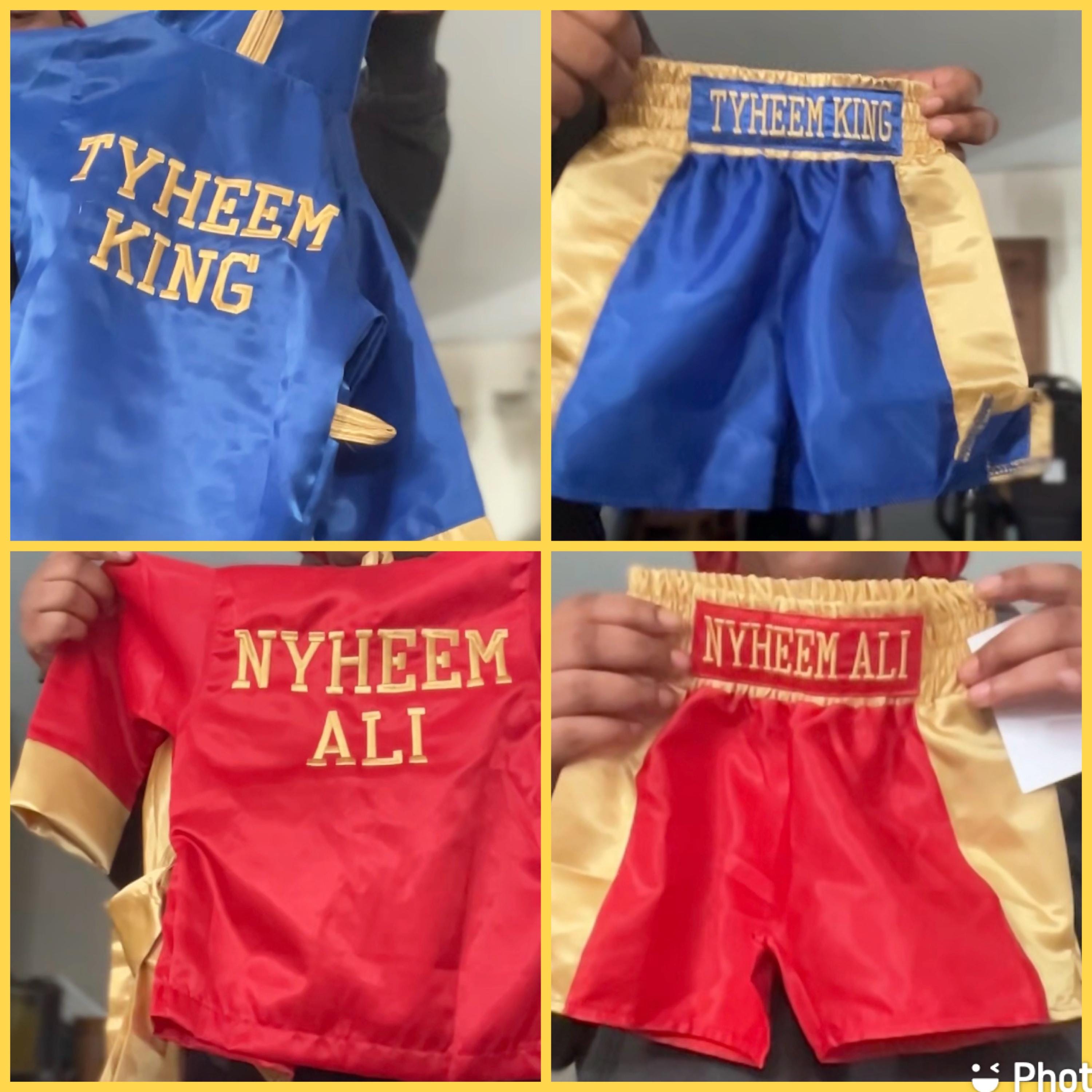 This listing allows you to select individual items (robe, shorts, or gloves) OR the complete boxing set.