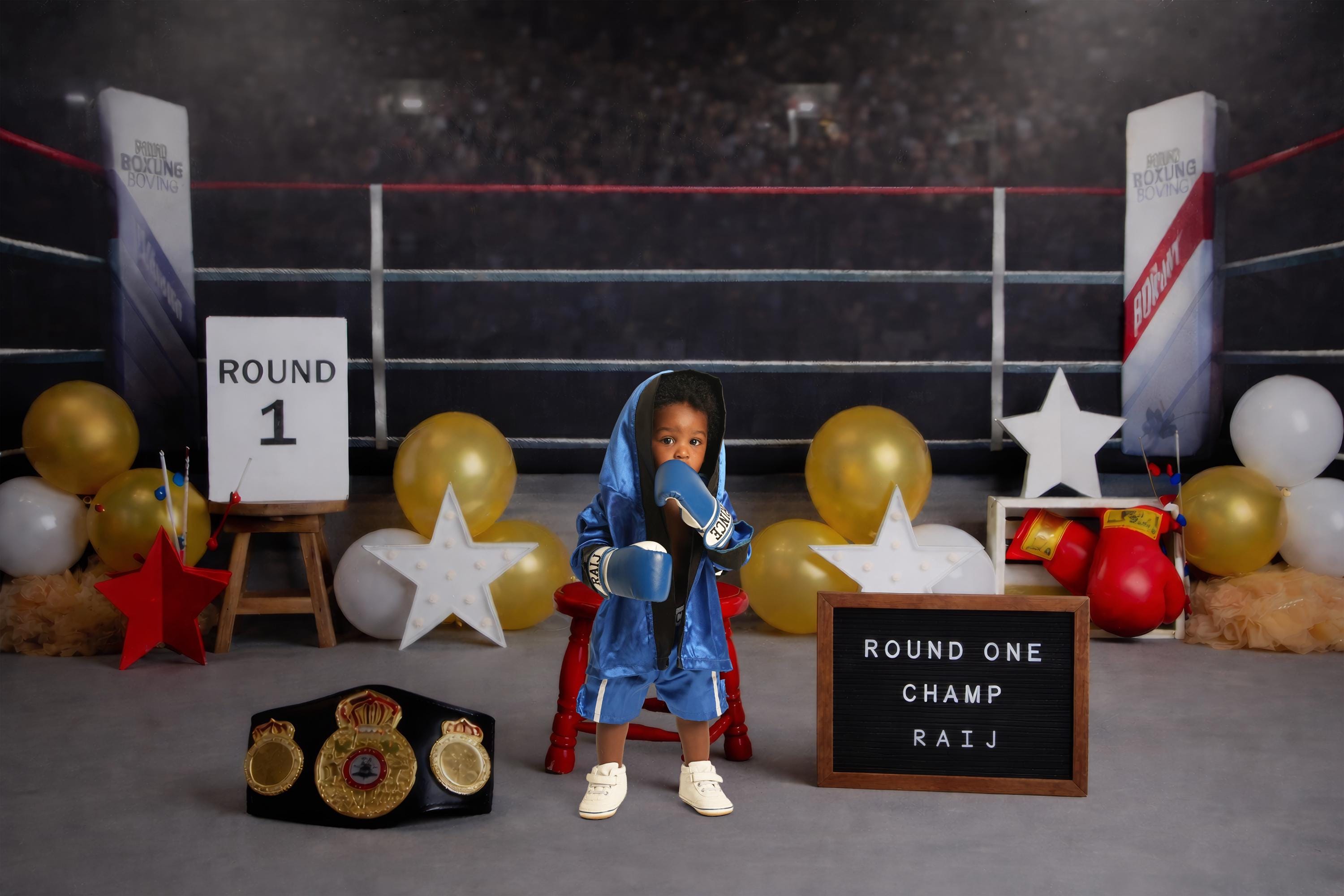 Looking for the full set? Contact us to include baby boxing shoes and a championship belt.