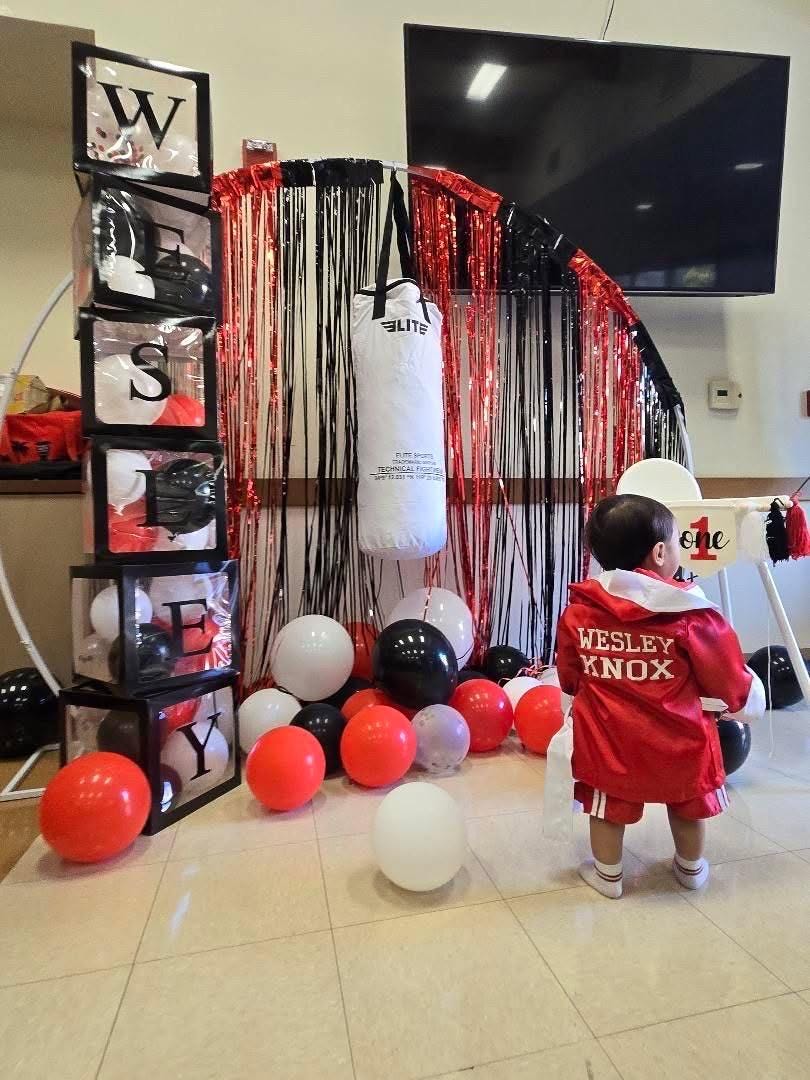 Looking for the full set? Contact us to include baby boxing shoes and a championship belt.