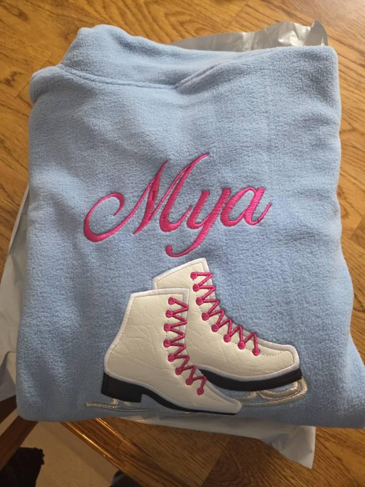 I ordered the kids Fleece Skating zip up. It is so freaking beautiful and worth every single penny! The size we discussed is perfect and should last a couple of years. If anything, it exceeded my expectations! The embroidery was absolutely perfect and so pretty! Thank you so much! I can't wait to order a towel soon!