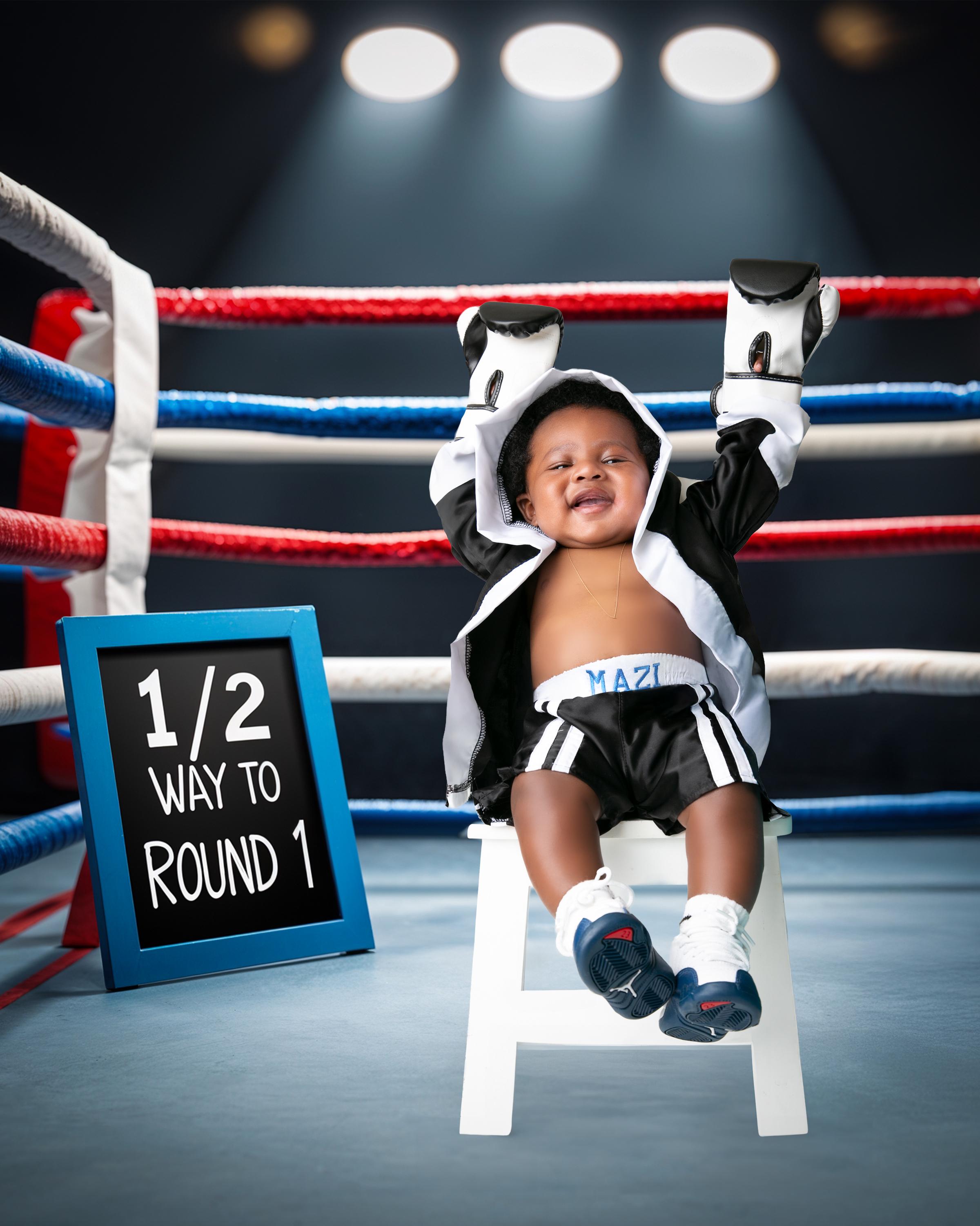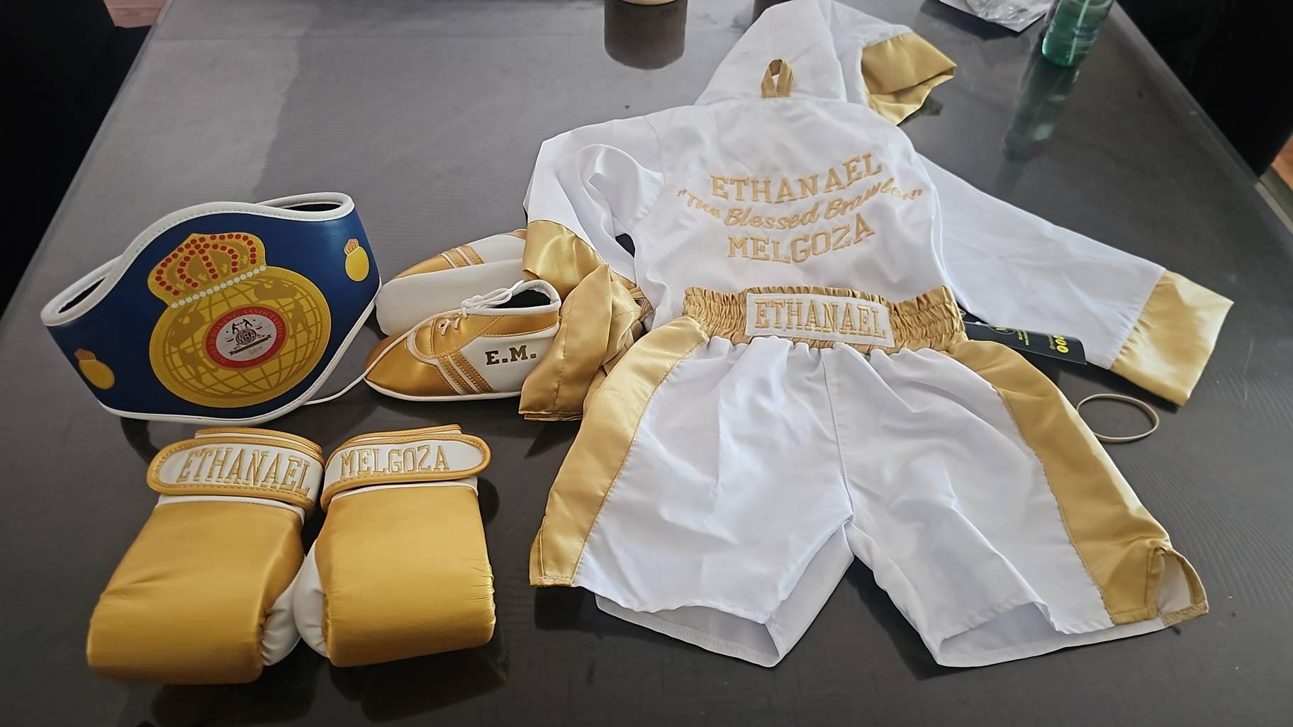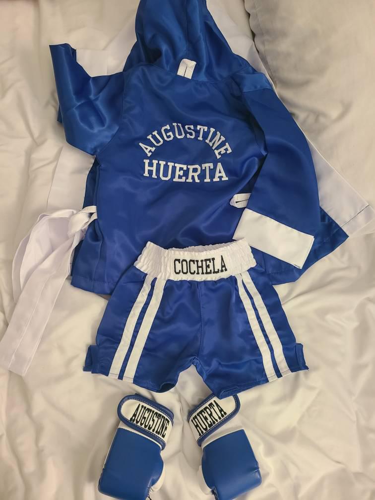 Looking for the full set? Contact us to include baby boxing shoes and a championship belt.