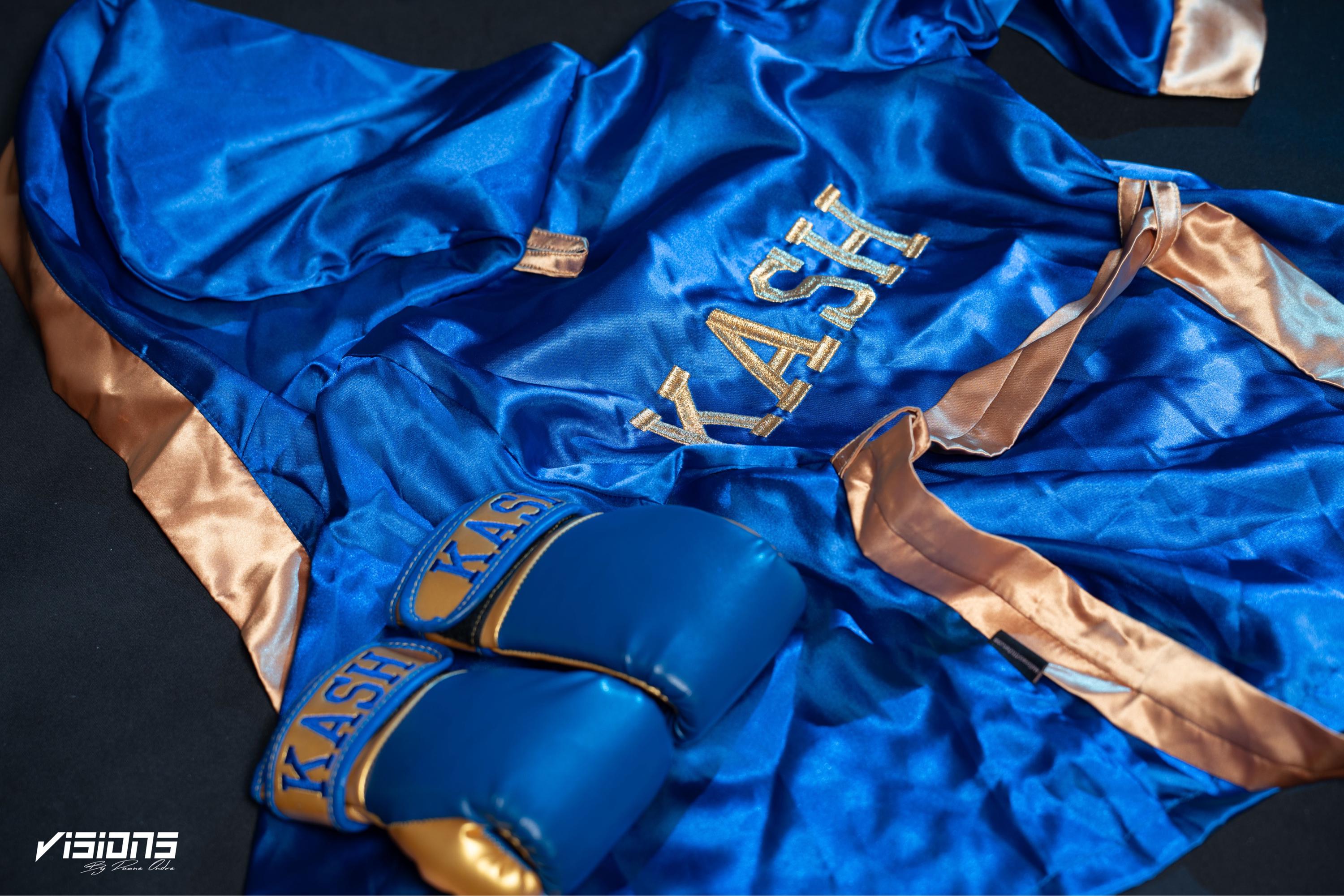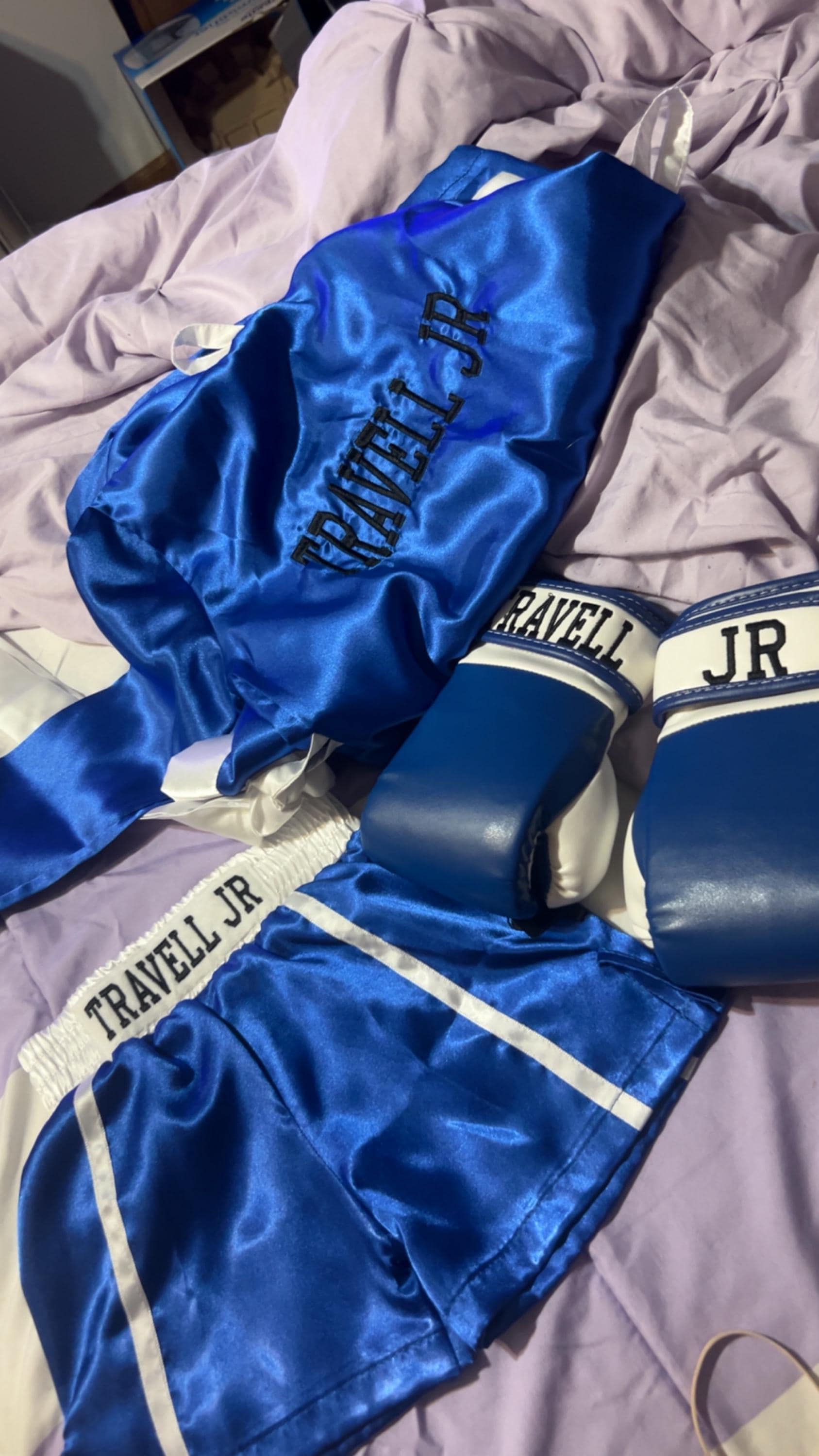 This listing allows you to select individual items (robe, shorts, or gloves) OR the complete boxing set.