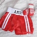 Welcome your little champ with style! Our adorable boxing set features personalized shorts with your baby's name, paired with cute prop gloves (please note: these gloves are for posing and not wearable).