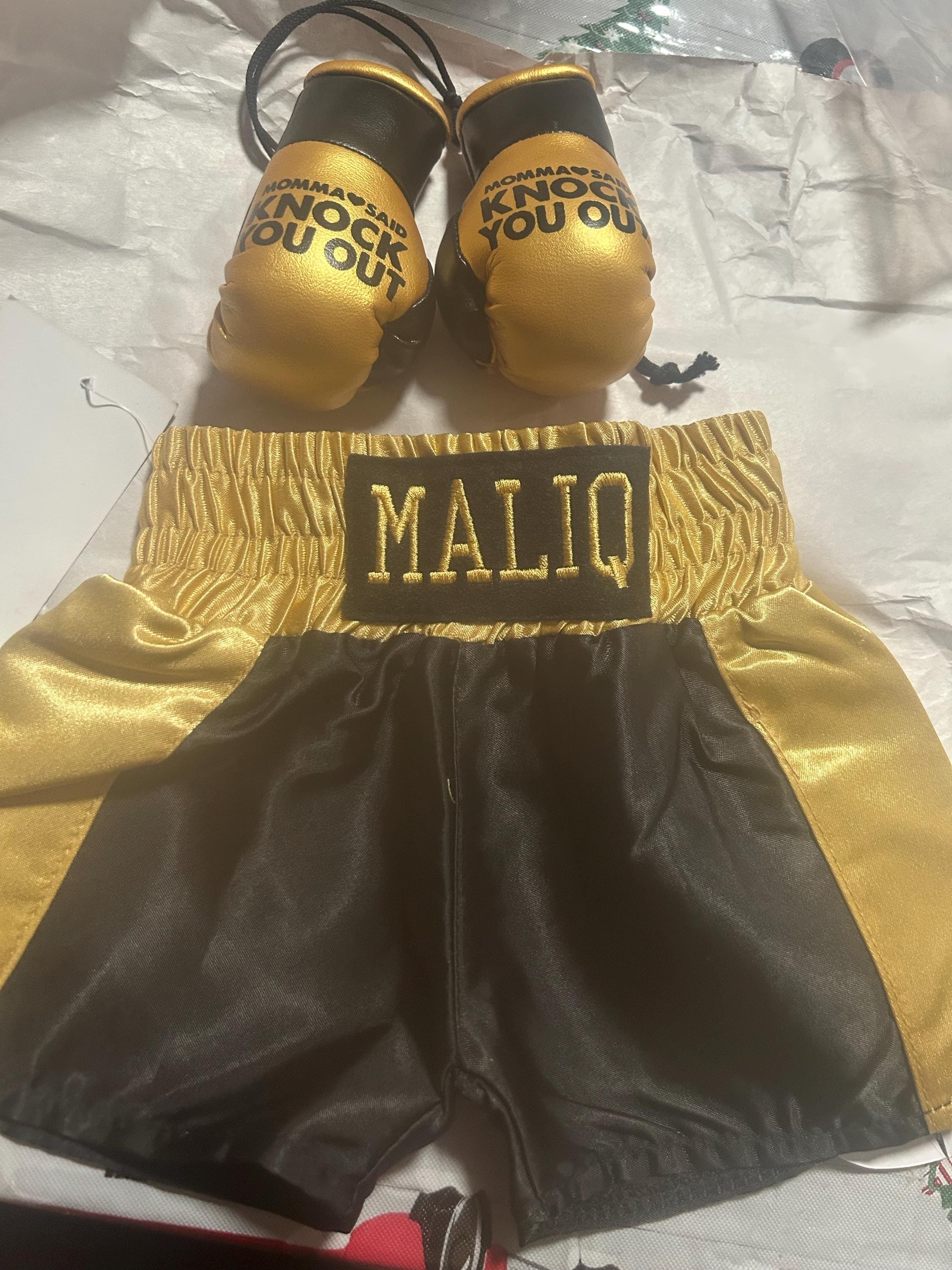 This gift is very special. This gift was for my biological first nephew. I am very excited for his arrival. All the pants were so small with the tiny box and glove. I’m looking forward to taking pictures of him in his clothes when he comes it was well made, and his father loves boxing so if it’s everybody’s personality.