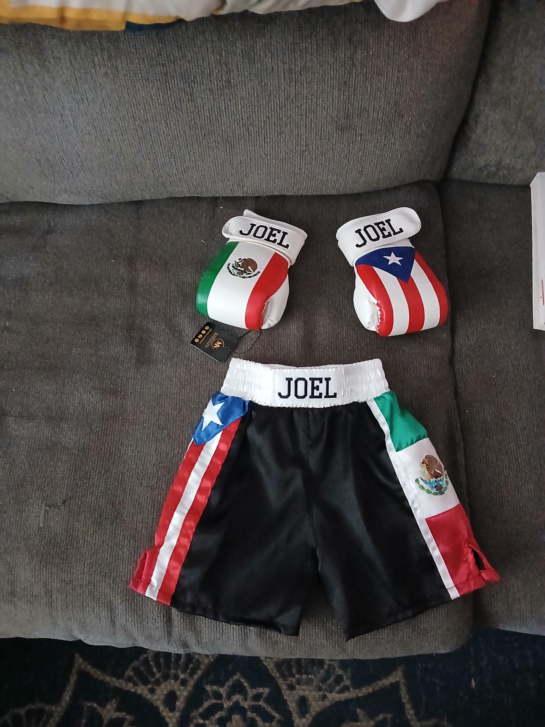Elevate your baby's style with our Mexico & USA Baby Boxing Set, complete with personalized gloves and shorts. Let your little champ make a statement with this unique outfit.
